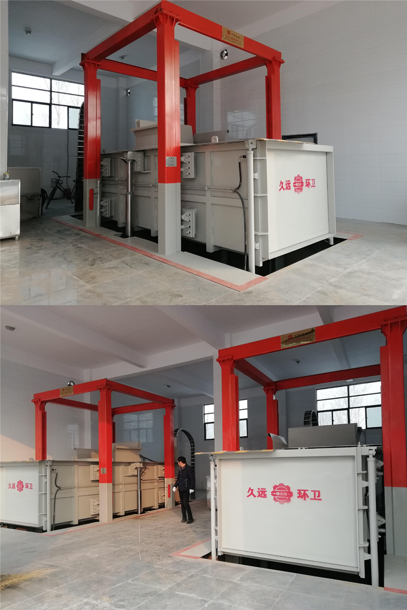 JY-3160 水平式四柱舉升垃圾壓縮設備是將垃圾的卸(出)料、壓縮、儲存集合在一起,利用地下空間將垃圾密閉在箱體內,同時配備噴淋降塵除臭系統和污水處理系統,解決了垃圾在收集、儲存、裝運過程中的污染環境、作業效率低等問題。