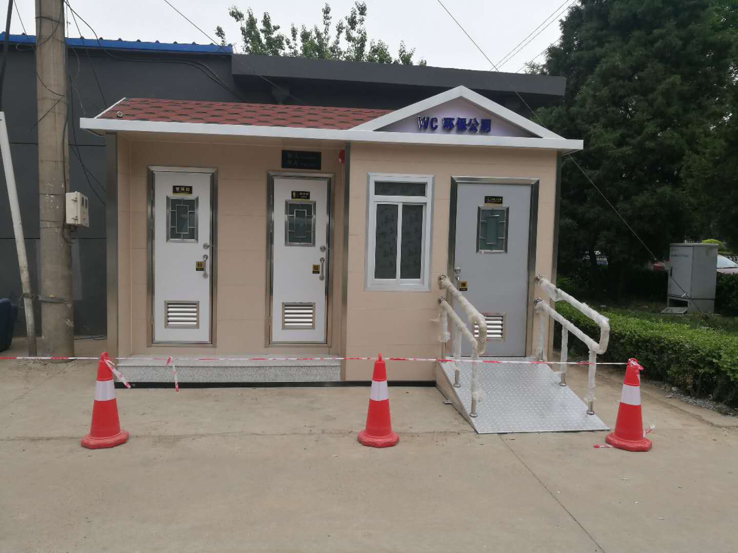 當(dāng)然,移動廁所不會受到任何工作環(huán)境的限制,其外部結(jié)構(gòu)特別輕。整個顏色在搭配過程中特別合理,適合安裝在一些不同的城市街道或大型公共場所,尤其便于移動。移動廁所是由鋼焊接而成的框架結(jié)構(gòu)。通常,底部用槽鋼或工字鋼焊接,立柱用方鋼制成。在墻體的基礎(chǔ)上,安裝墻體材料,包括彩鋼板、金屬雕版、鋁塑板、防腐木等??蚣苁綑C構(gòu)可以滿足提升要求,可以移動挪威進(jìn)行提升,因此被稱為移動廁所。本發(fā)明不受任何工作環(huán)境的限制,外觀結(jié)構(gòu)輕巧,配色合理,適用于城市街道、公園綠化、車站、碼頭、旅游景點、別墅區(qū)、新建住宅區(qū)、大型建筑工地、廣場、人口稠密的公共場所和繁華的商業(yè)街。移動式公廁具有可移動、可組合、便于運輸?shù)膬?yōu)點。此外,移動廁所的內(nèi)部配置高于普通固定廁所。